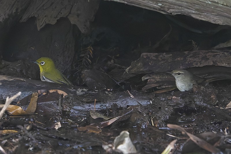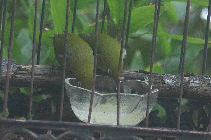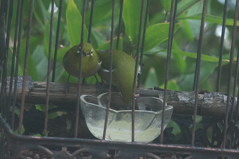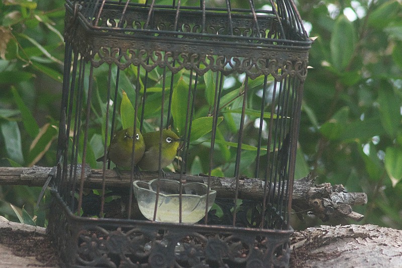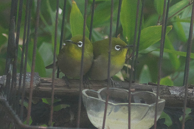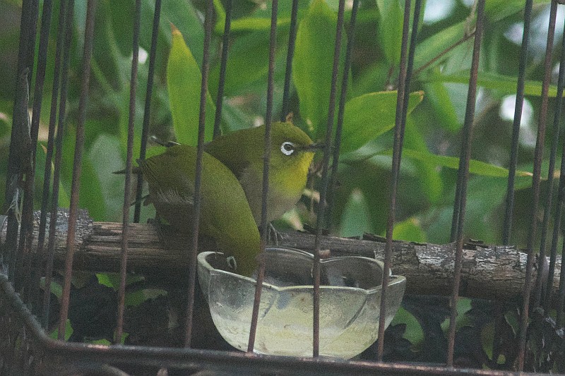個室レストランにやって来たメジロのカップル。  最後の画像は食材を補給して撮りました。