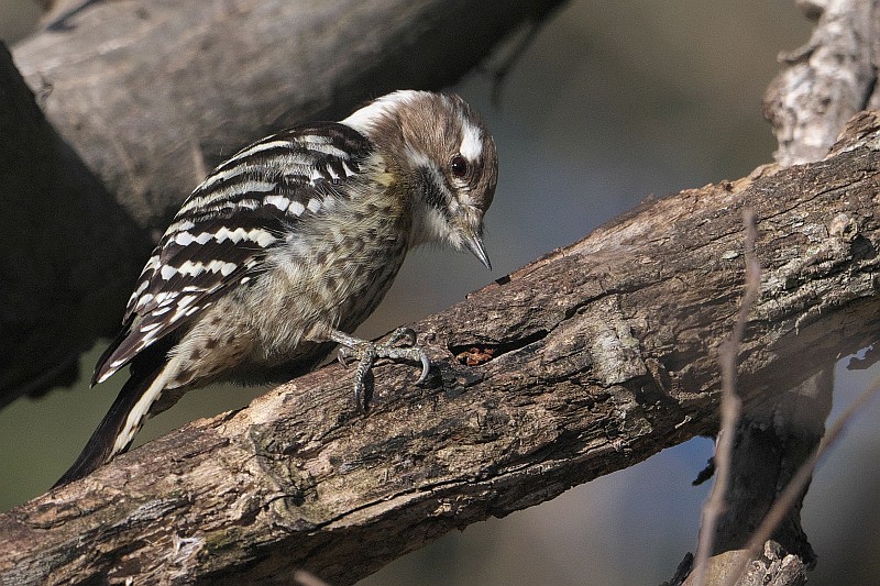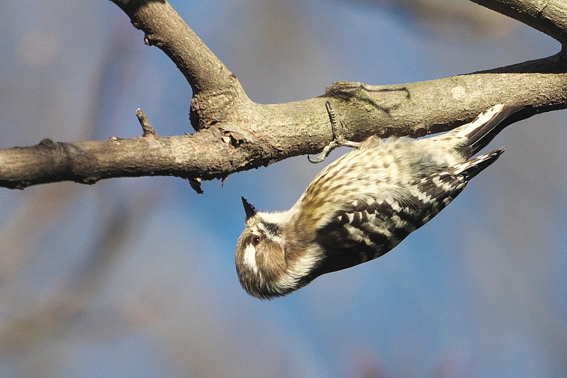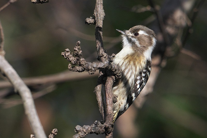 日のコゲラ。 最後に♂が現れましたが。。。