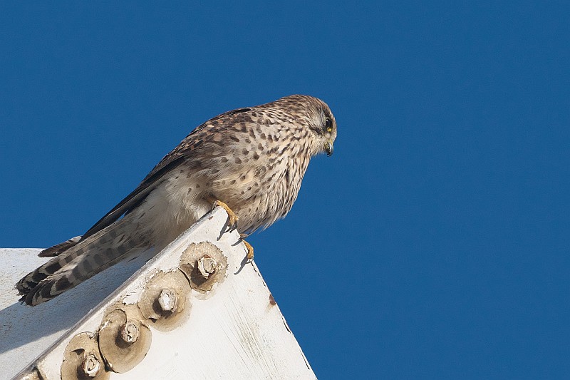 本日のチョウゲンボウ。 橋ポイントでカワセミを撮っていたら、飛んできて鉄柱に止まりました。
