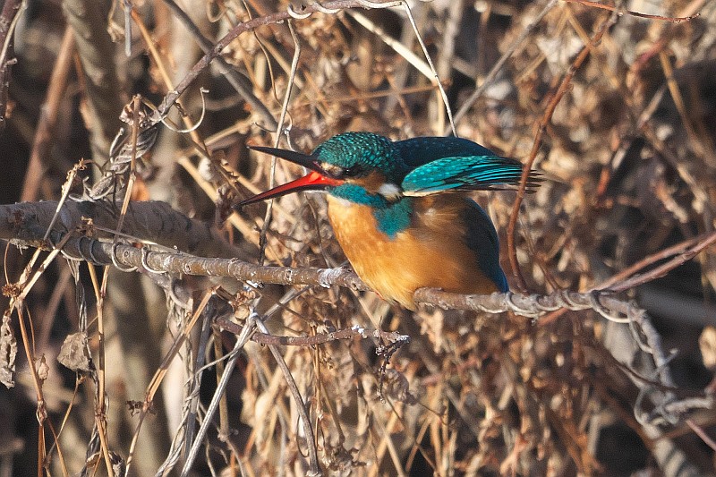 主♀カワセミもいろんな枝に止まってくれました。