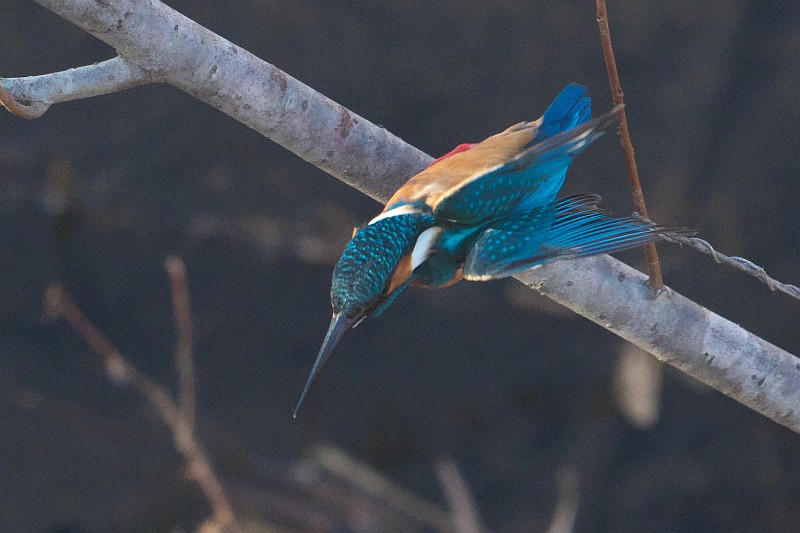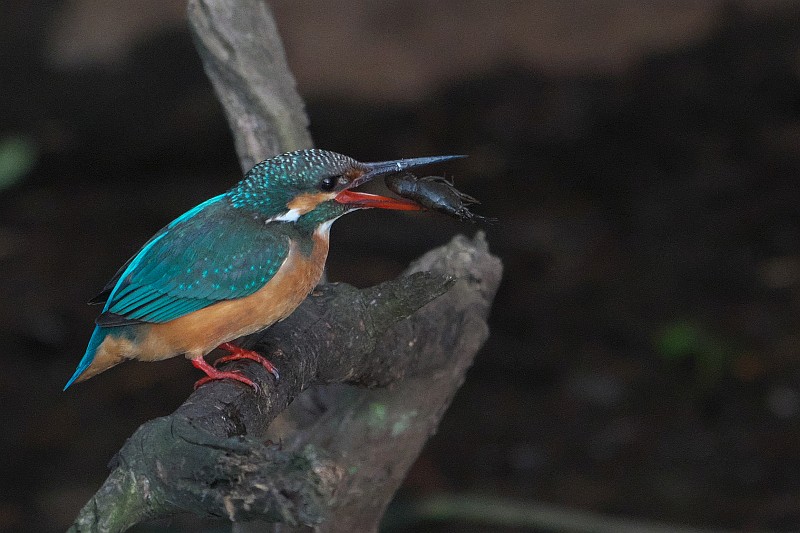 そして日没時刻にいつもの小さな池に立ち寄ったのですが、オオアカハラが出ていたので撮っていたら、カワセミも出てくれました。
