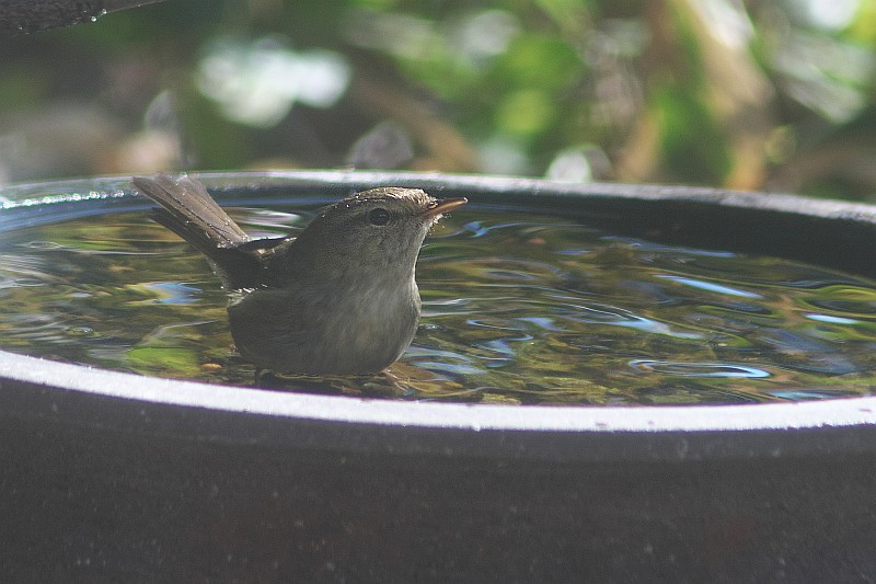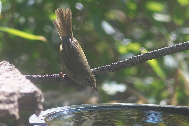 今日は昼頃に部屋でノンビリしていたら、監視モニターにウグイスが水浴びしている様子が映ったので、慌てて撮りました。