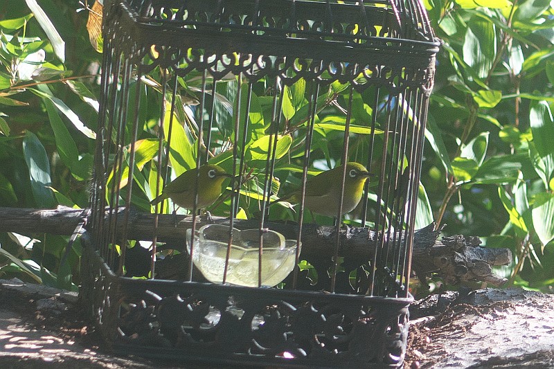 まずは本日の庭撮りから、水場に来たウグイスと、個室レストランのメジロ。 ちょっと逆光気味です。