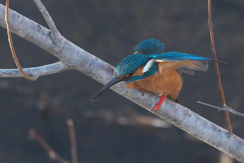 主♀カワセミはすでにお出ましでした。 ヒクイナも出っぱなしでしたが、ずっと暗いところに居ました。