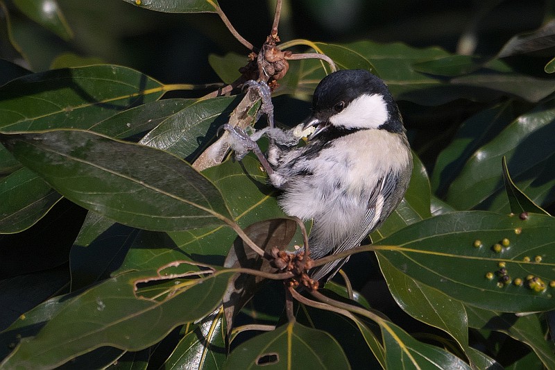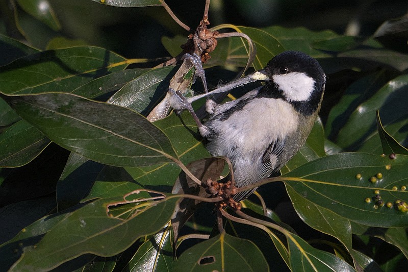 まずは本日のシジュウカラ。 早くも巣材集め?かと思ったのですが、何かを食べていました。