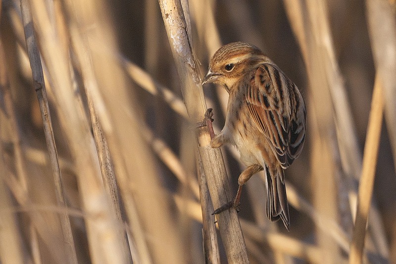 そして期待したセッカには振られましたが、オオジュリンが数羽居て、葦の奥で茎を囓っていました。