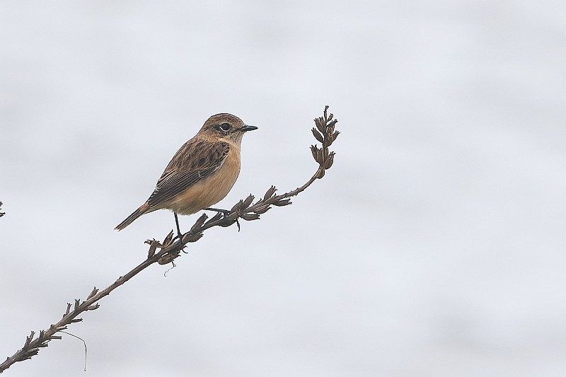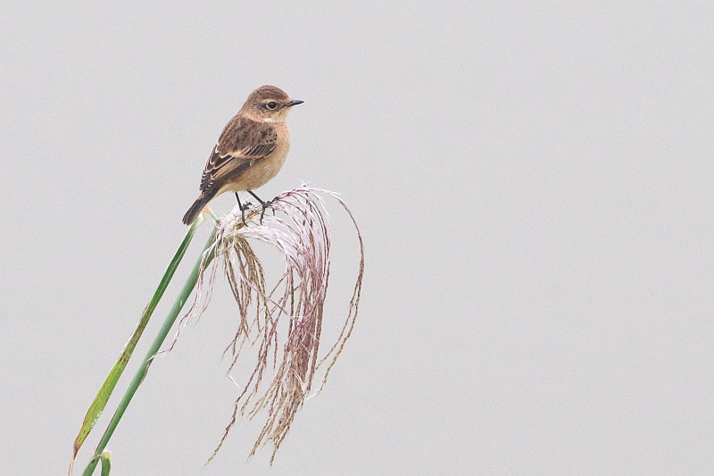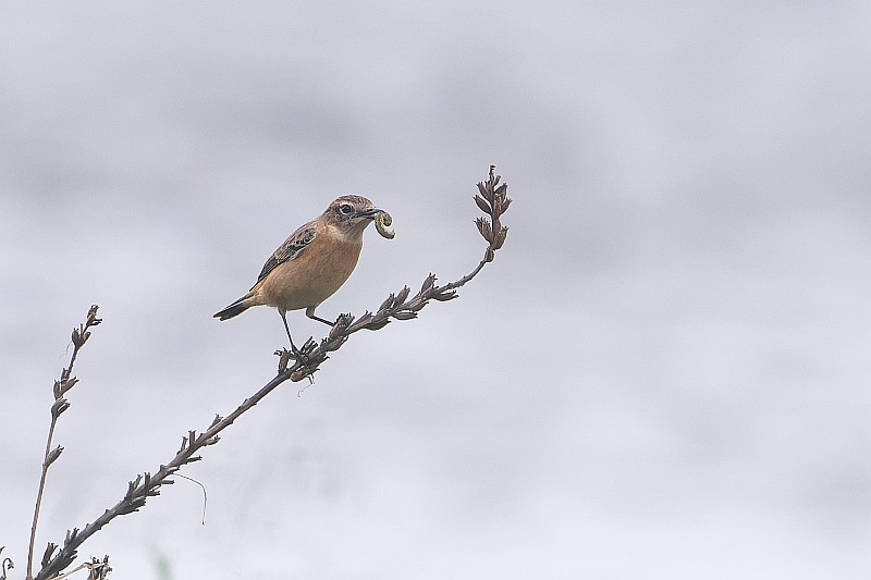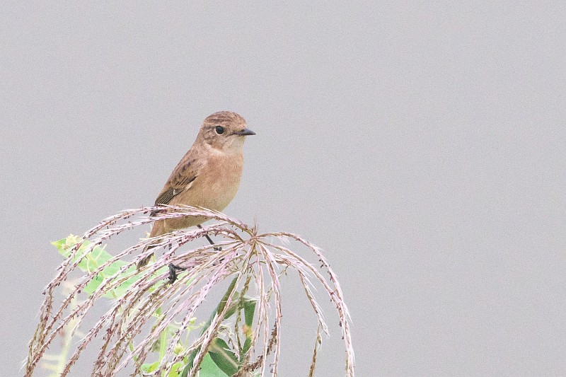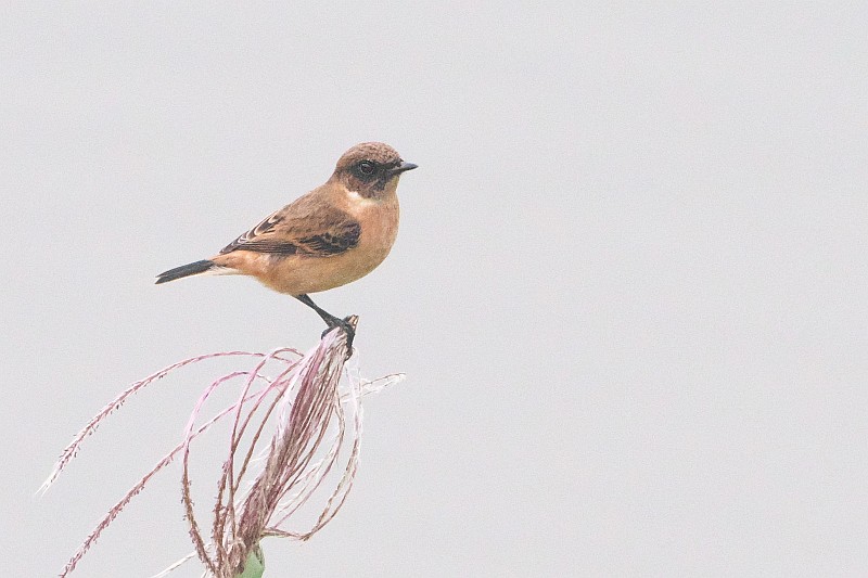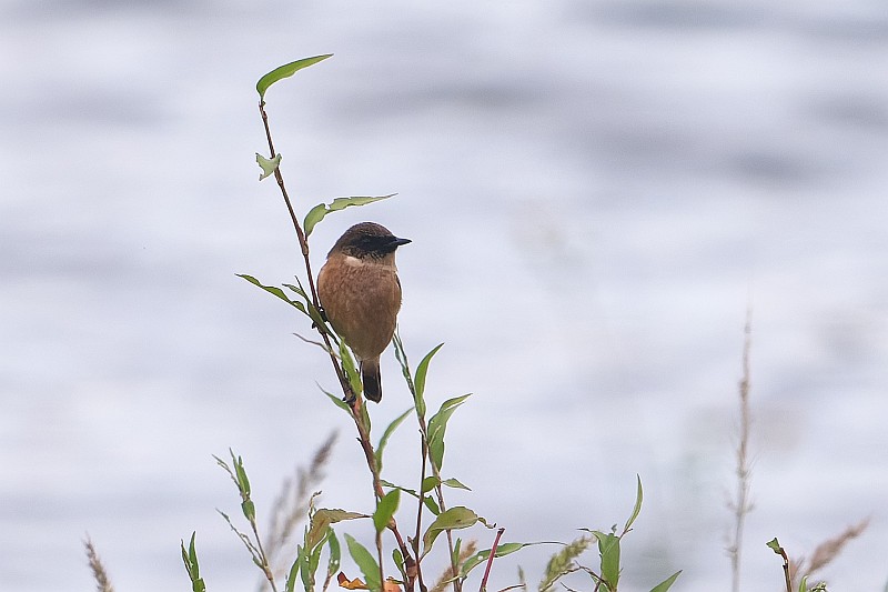 まずは本日のノビタキ。 かなり遠かったです。背景が川で曇天空抜けのような画像になってしまいました。
