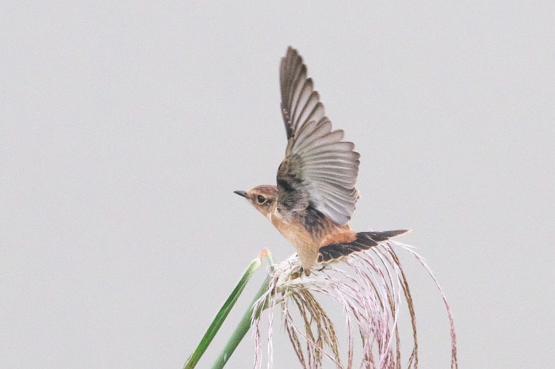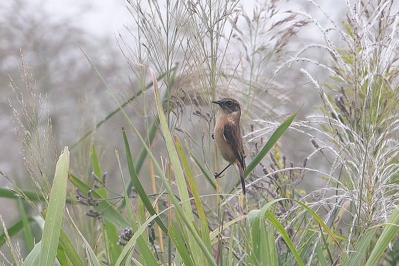 次に北の遊水池に移動したのですが、ここでは数羽のノビタキが飛び回っていました。