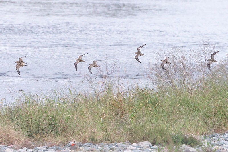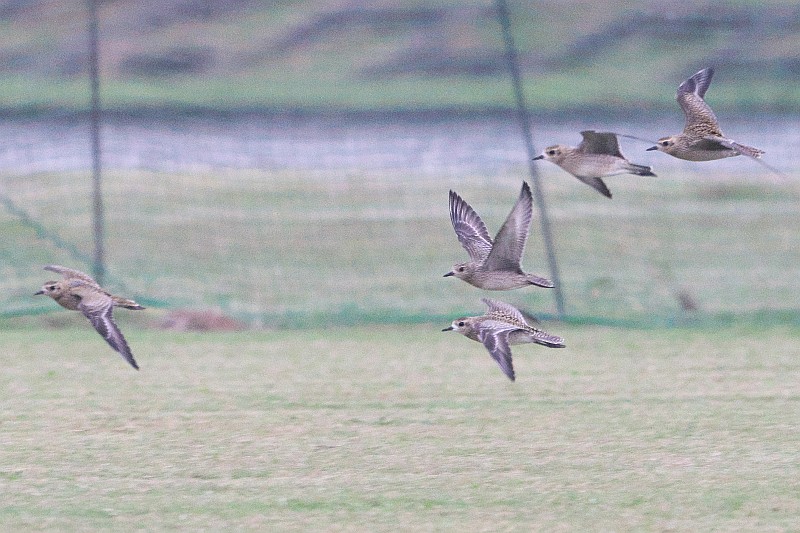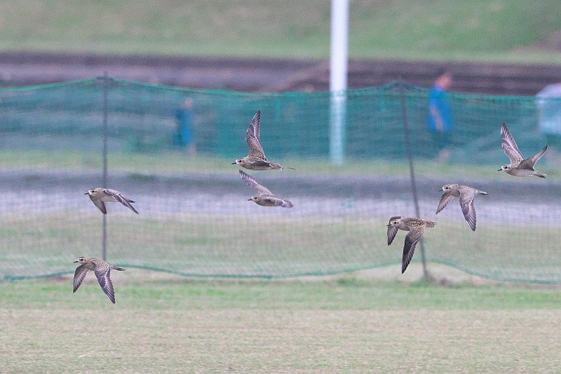 グラウンド側に10羽ほどが居るのを見つけて撮ろうとしたのですが、犬の散歩の人が通りがかって飛ばれてしまいました。