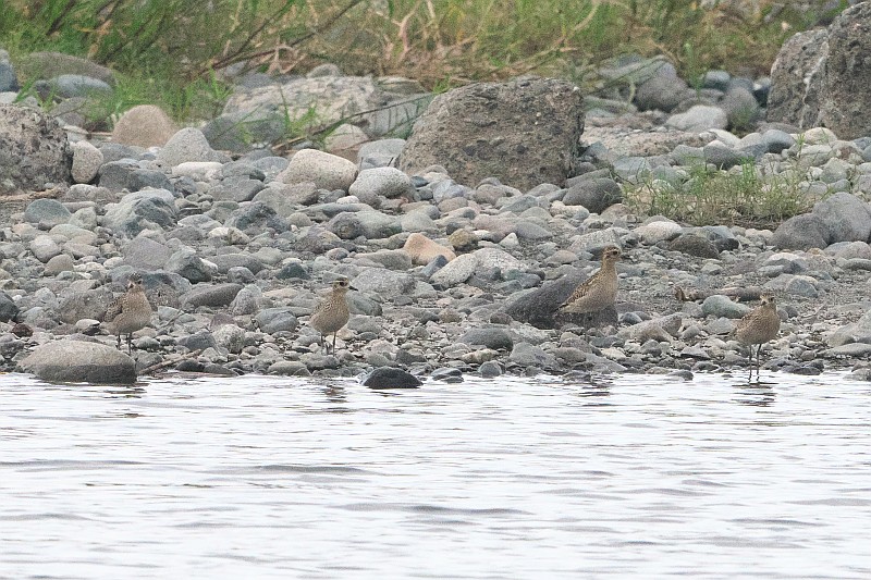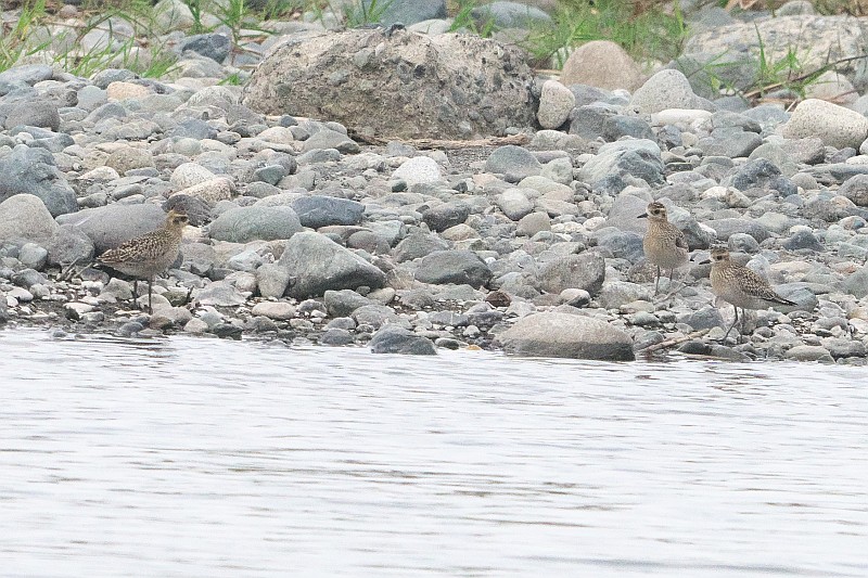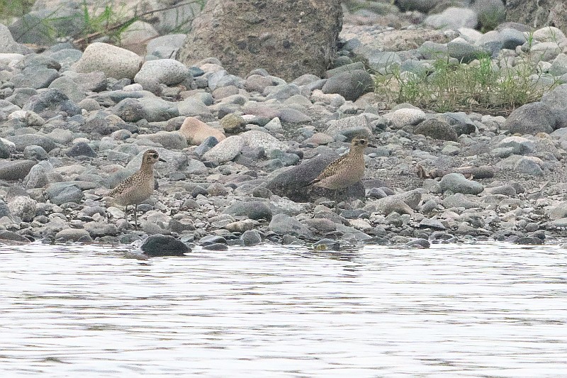 グラウンドからの飛び出しと、対岸のムナグロ冬羽(幼鳥?)