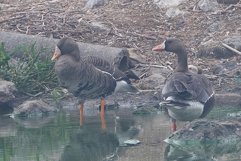 で、到着は16時頃ですが、マガンは居てくれました。 2羽仲良く一緒に行動していました。