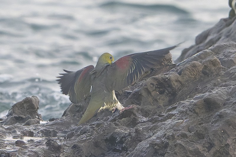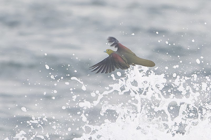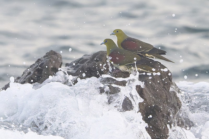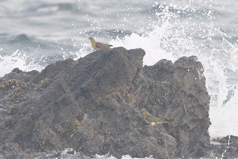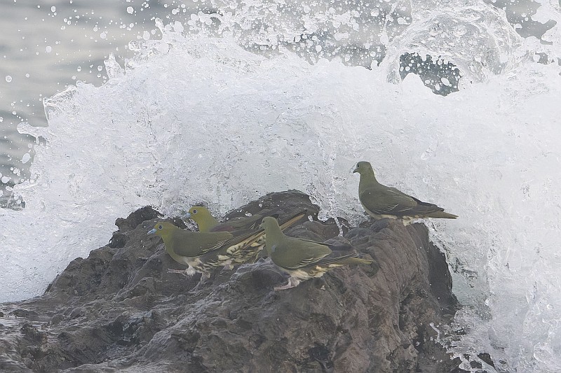 とにかくアオバトの飛来を待ったのですが、一度だけ10羽ほどの群れが来てくれて、なんとかノーシャッターは免れました。