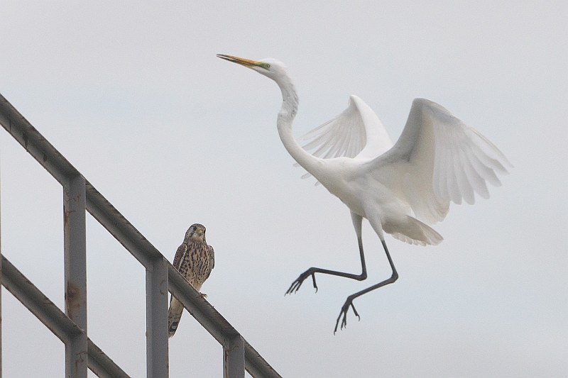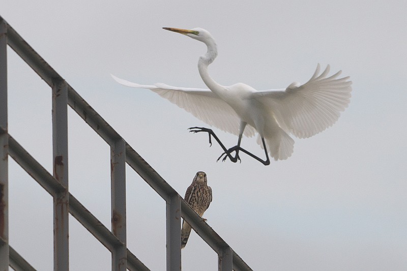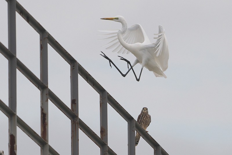 まずは本日のチョウゲンボウ♂。 ダイサギが目の前に止まりました。