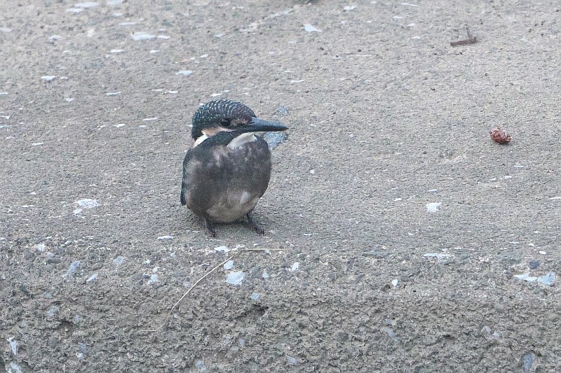 そして池には何も居なかったのですが、向かいの川にお腹が真っ黒なカワセミ雛が居ました。