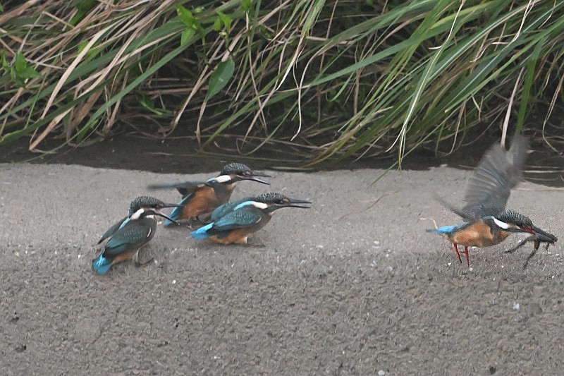 そして、本日のカワセミ。 1枚目は彼岸花を入れてみました。  川では親が蛙をゲットして通り過ぎました。