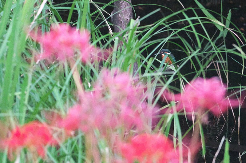 そして、本日のカワセミ。 1枚目はかなり強引な彼岸花カワセミ。